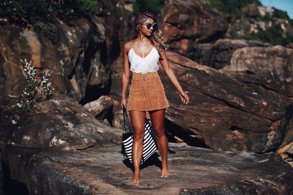 One of our favourite Colette girls, Jessie Khoo has shown us how to perfect your favourite beach outfit by looking casual yet chic at the same time! Jessie has teamed a luxe cami tank top with a suede skirt and reflector sunglasses - perfect for stopping off for a sneaky cocktail after a day in the sun we think!