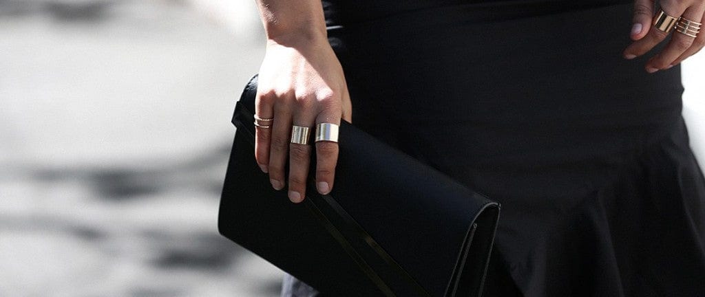 Lisa chose to incorpoate a black clutch into the look, the clean lines and angled edge compliment the top and skirt combo keeping it sleek and simple. For a more handsfree effect this clutch can double as a shoulder bag with a chain blending into the outfit more seamlessly (bonus)! The simple layering of the gold rings adds another element to the look along with the gold crown by adding a modern edge. We ADORE this look!!