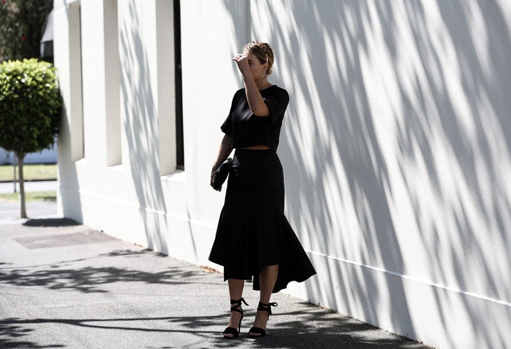 Clothing: The Fifth The Label crop top, C/MEO Collective Skirt and Senso Heels