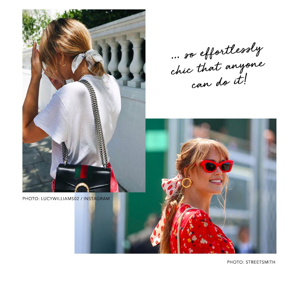 Hair scarves are taking over! All of your fave celebs have tied a silk scarf around a pony, bun or braid over the summer…AND YOU CAN TOO - This hair trend is so effortlessly chic that anyone can do it! Just look at Insta guru Steph Claire Smith. She matches a bold hair scarf with a red dress and sunglasses for a well-coordinated outift. Steal Steph’s style by wrapping our ‘Red Printed Fabric Scarf’ around a high-pony. You can even braid one through your hair to add colour and dimension.